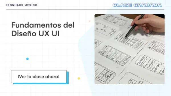 🚨 Ver la clase grabada, aquí: https://bit.ly/3JuGy9W 🚨 ¿Estás buscando aprender sobre diseño UX/UI pero no sabes por dónde empezar? Entonces, ¡empieza por aquí! ¿Te has preguntado cómo se diseñan las aplicaciones y los sitios web desde la perspectiva del usuario? En una economía digital de rápido crecimiento, las habilidades tecnológicas se están volviendo esenciales para varios propósitos. Tal vez te gustaría agregar más habilidades a tu currículum o tengas ideas que quieres desarrollar. Para algunos, es una oportunidad de pasar a una nueva carrera. Únete a nosotros en un taller práctico de diseño de UX/UI impartido por uno de nuestros profesores expertos de Ironhack. Te ayudaremos a aprender los conceptos básicos y ver qué tan lejos puedes llegar al comprender algunos de los fundamentos del diseño UX/UI. En esta clase online exclusiva, cubriremos: 🔹 El proceso de 5 etapas de Design Thinking, mientras lo aplicamos juntos en un reto. 🔹 Herramientas para traducir la investigación de los usuarios en información procesable. 🔹 Herramientas para generar múltiples ideas para resolver problemas reales. 🔹 Cómo construir Wireframes y Prototipos en Figma. Seguiremos a nuestro instructor paso a paso mientras construimos un producto digital de la vida real, guiándonos en marcos de diseño de UX/UI clave y útiles. Aprenderás conceptos clave que puedes comenzar a aplicar en tu trabajo futuro. 📅 ¿Cuándo?: Cuando quieras, ya que es una clase grabada :) 💻 Modalidad: Online